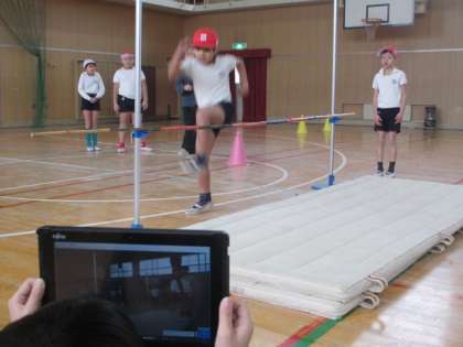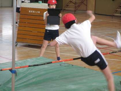 自分のフォームが正しくできているか、友達にタブレットで動画を撮影してもらい、跳んでから確認しています。