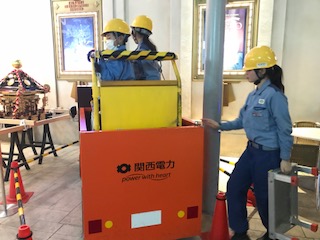 関西電力から電線を直しにしてくれました。高いところに上がり、頑張っています。このような体験から働くことの大変さを実感しています。