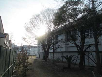 講堂北側のケアキの木には、まだ、葉は出ていません。