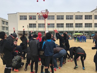 東小学校でサッカーフェスティバルがありました。たくさんのチームが集まり、サッカーの試合をします。子どもたちは、一生懸命にボールを追い、がんばっていました。昼には楽しいイベントもあり、スパイダーマンが登場しました。すてきな小学校生活の思い出をありがとうございました。