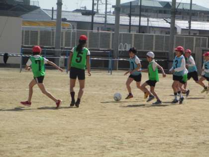 明るい日差しの中で、元気よくサッカーのゲームをしました。