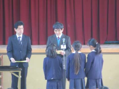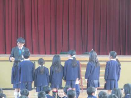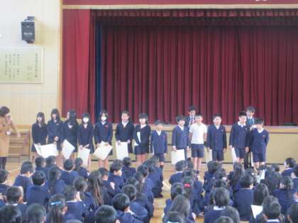 また、代表委員のみなさんには、この1年間、あいさつ運動をはじめ、児童会行事で様々な役割を担い、長吉東小学校を明るく、元気にしてくれたことに対する表彰がありました。