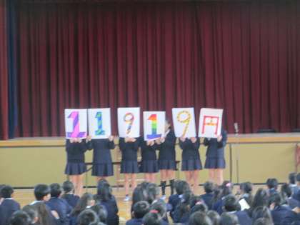 2月のあいさつ運動時に、ユニセフの募金をしていました。