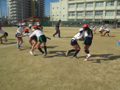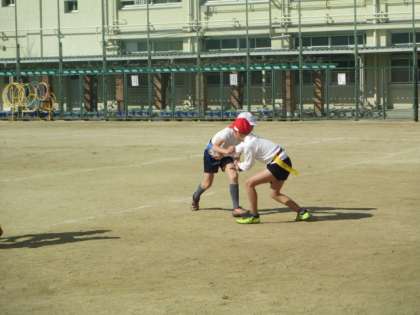 タグラグビーの練習をしました。