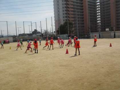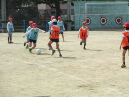 チームに分かれて、サッカーのゲームをしました。