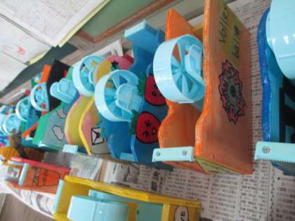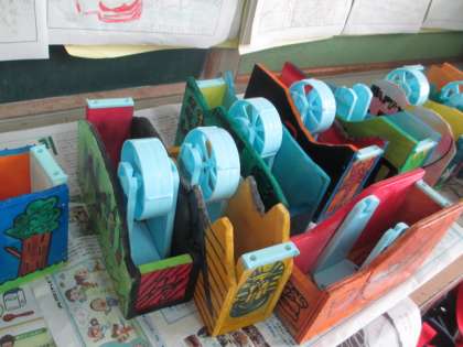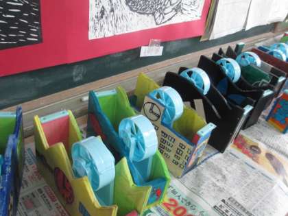 小学校生活最後の立体作品、テープカッター台が完成しました。