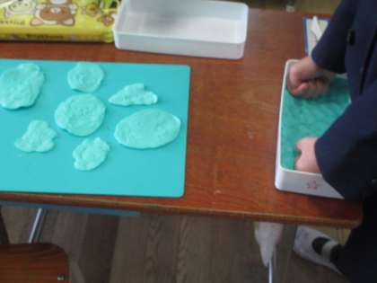 円盤型にしてスタンプしたり、動物を作ったり、いろいろな造形を作って楽しんでいます。