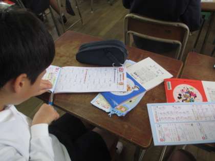 計算ドリルや漢字ドリルの使い方について学習しています。