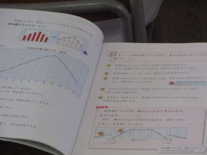 気温の変化の折れ線グラフからいろいろな事柄を読み取っています。