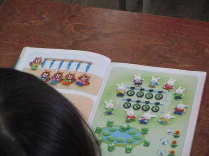「かえる」と「はっぱ」の数を比べています。