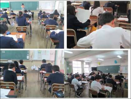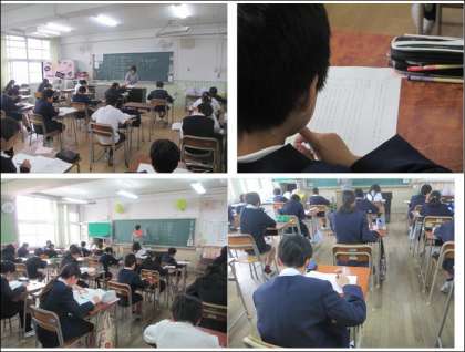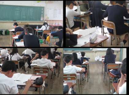 真剣な面持ちで、国語、算数、理科の問題に取り組んでいます。