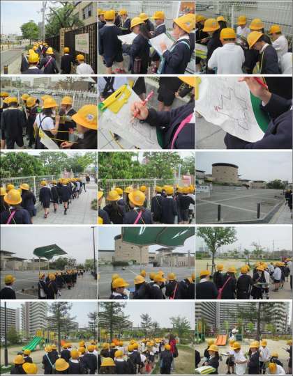 毎日の生活の中で、見慣れた風景ですが、学年のみんなと一緒に回ると、今まで気づかなかった事柄も結構発見することができます。