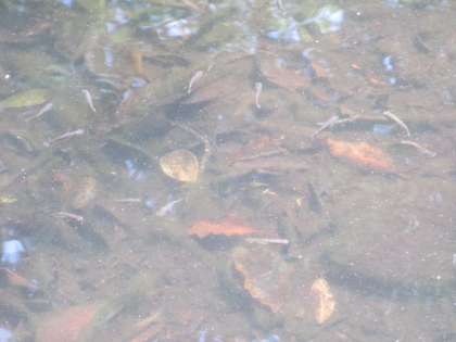 講堂前の池のクロメダカも暖かくなり、元気に泳ぎ回っています。