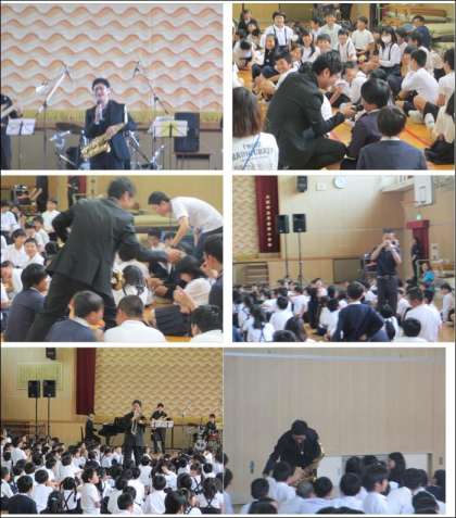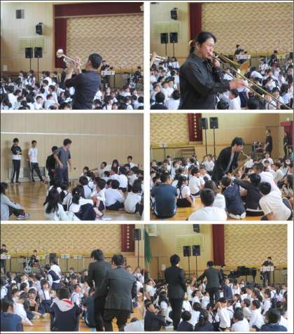 ジャズの曲だけではなく、アニメ曲などもジャズ風にアレンジして演奏していただきました。また、曲に合わせて、ダンスをしたり、歌ったり、子どもたちの中に入り演奏し、子どもたちは歓声をあげていました。