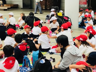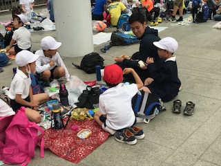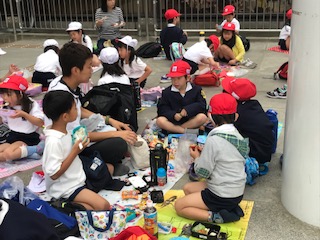 待ちに待ったお弁当の時間です。先生と一緒にみんなで楽しく食べました。おいしかったです。