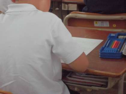 校長先生のお話を聞いて、それぞれの学級で、「いじめ」について考えました。