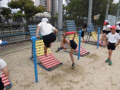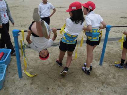 鉄棒に挑戦しています。