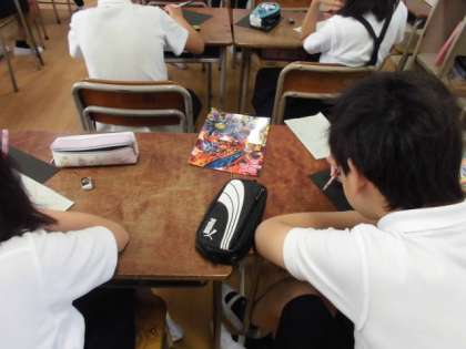 線対称の学習を進めてきた6年生。左右反転した色になる作品ができます。
