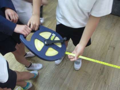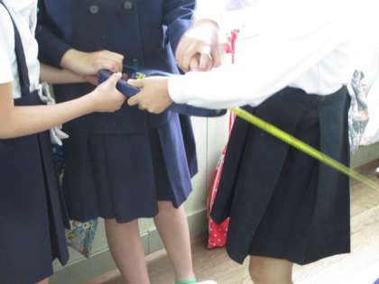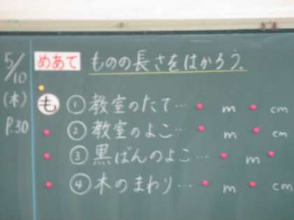 仲間と協力しながら、教室の中で、いろいろな長さを測りました。