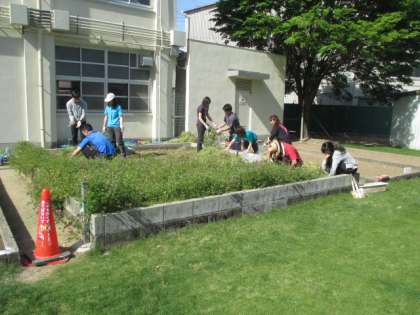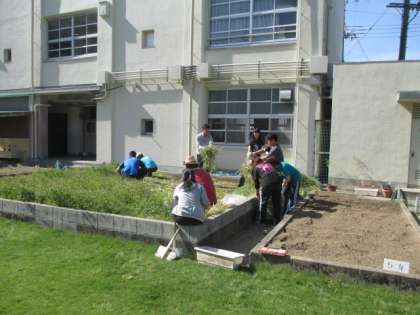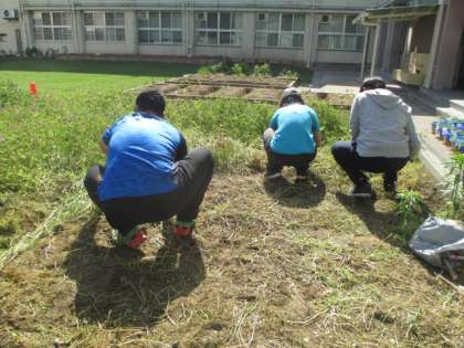 刈り取ったレンゲは、田んぼの肥やしにするため、鋤き込みます。