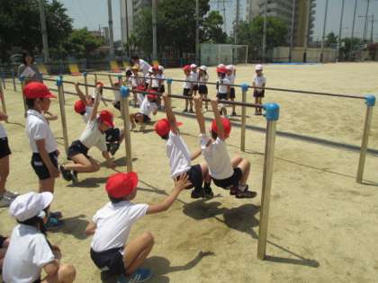 両手でぶら下がったり、片手でぶら下がったり、いろいろな技ができるようになっています。
