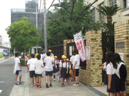 代表委員会のみなさんの大きな声が学校玄関に響いています。