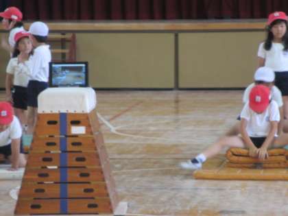 自分の試技を少し時間をおいて、再生するソフトがタブレットの中に入っています。その機能を使って、学習を進めています。