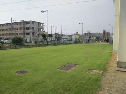 学校東側の芝生は、地域の方が定期的に芝刈りをしてくれています。