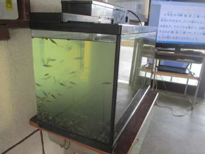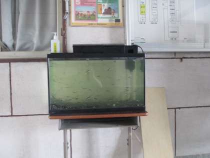 昨日の委員会の時間に、講堂前の池のクロメダカの救出とザリガニの駆除を行いました。