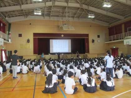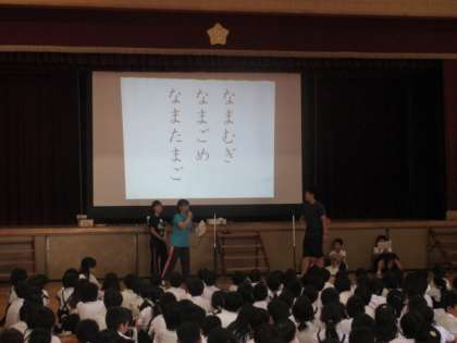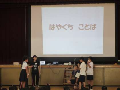 今年度は、児童集会時にいろいろな言葉に親しむための活動をします。