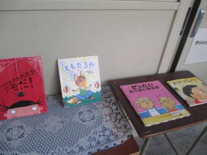 玄関にも、校長室前にも本の紹介コーナーがあります。