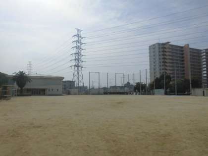 今日は晴天。講堂横の池のハスも昨日は9つ花をつけていました。