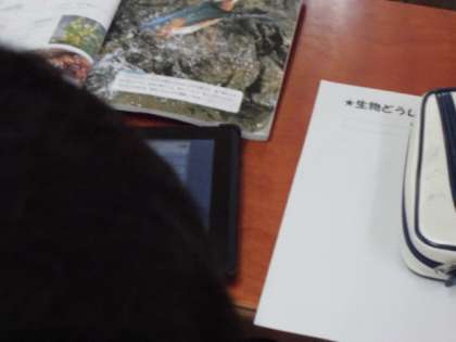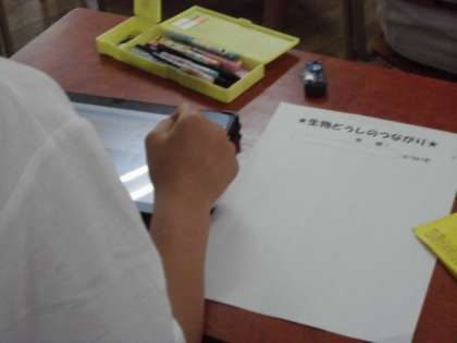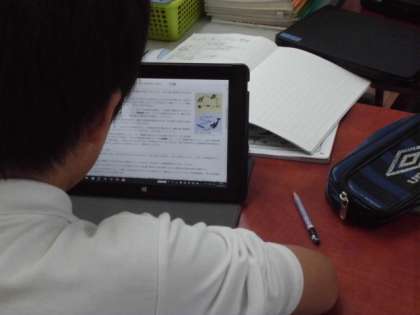 をタブレットを使って学習しています。