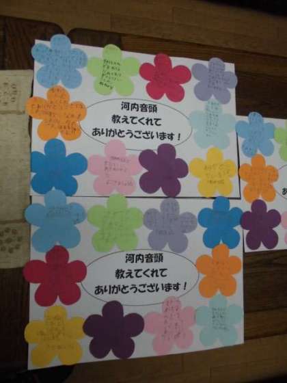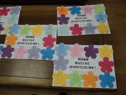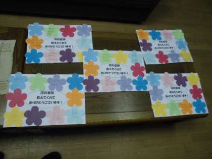 花型にの一枚一枚の中に、2年生のみなさんの感謝の言葉が書かれています。