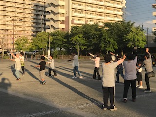 毎週火曜日にクラフトパーク前で開かれている、長吉イーストクラブの盆踊りです。今回も何人かの子どもたちがうれしそうに参加しました。地域の皆様、いつもありがとうございます。14日、15日のさくらでも盆踊りでも楽しく踊ることができるよう願っています。