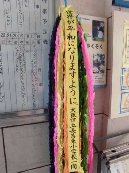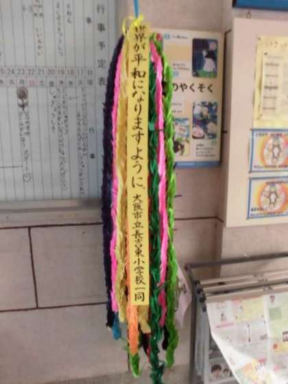 おりづる集会のときにみんなで作った千羽鶴が完成しました。
