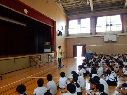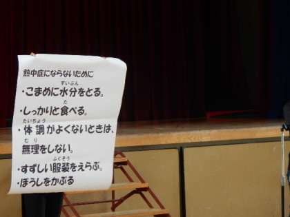 引き続き、夏季休業中の過ごし方、プール開放の約束のお話がありました。最後に、熱中症の予防につていの話を聞きました。