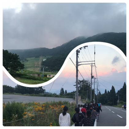 外は少し暗くなってきました。キャンプファイヤー場に向かいます。