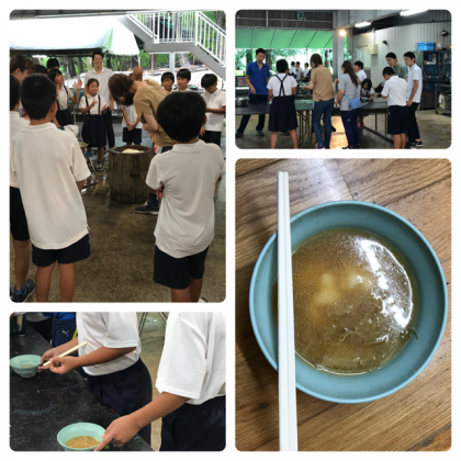 お餅は丸めて豚汁にしていただきました。みんなでついたお餅は柔らかく、美味しかったです。
