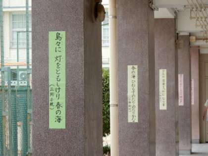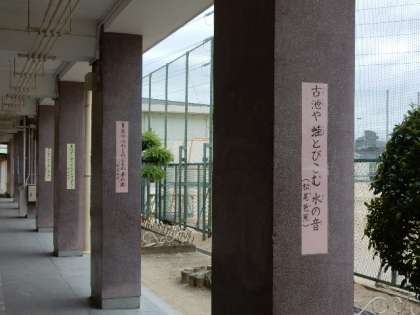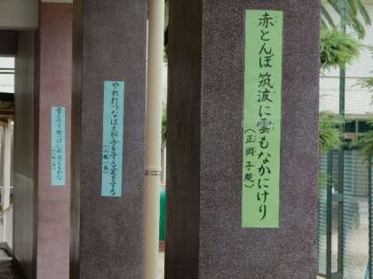 新館の1階の廊下の柱に、古今の著名な俳句を掲示しました。