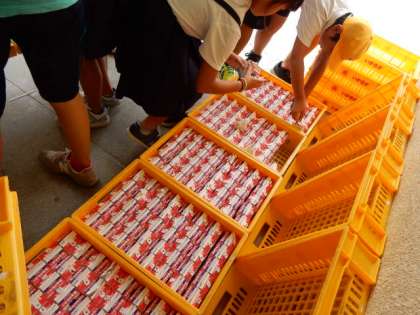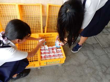 持ち運びでは、ビンに比べて相当軽くなりました。また、割れる危険性もなく、当番の子どもたちには好評でした。でも、同じ牛乳ですが、牛乳パックで飲む牛乳と、牛乳瓶で飲む牛乳では、何となく味が違うようです。それに、このあつい中、牛乳ビンを触った時の冷たさが、牛乳パックにはないようで、その不満を言っている子どももいました。