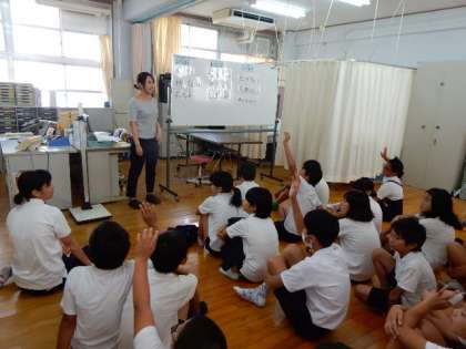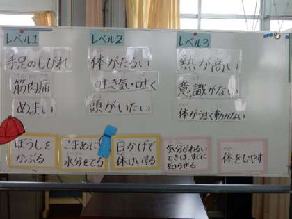 発育測定前に、熱中症についての学習を行いました。まだまだ残暑の厳しい期間が続きそうです。