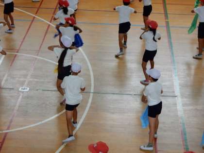 3年生では、4曲使って、ダンスを行います。1曲目を終え、今日は、2曲目に挑戦しています。