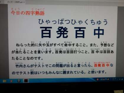 「百発百中」、発射した弾丸や矢などがすべて命中すること。或いは、予想した計画や狙いがすべて当たることを表す言葉です。
