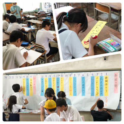 運動会に向けて委員会活動がスタートしました。長吉東小学校のリーダーとサブリーダーが自分たちの運動会をつくるべく、様々な係を分担して、活動をします。今日は、プログラムを作ったり、プラカードを持って歩いたり、それぞれの委員会で活動を進めました。運動会の大きな目的の一つに、高学年は、自分の責任を果たすというのがあります。それらをやりとげてこそ、運動会は成功するのです。