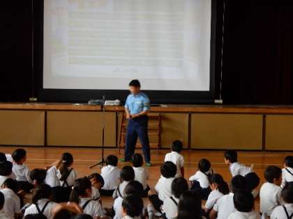 安全に歩行することの大切さを、ビデオを見たり、おまわりさんのお話を聞いたりして学びました。
