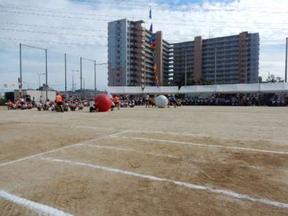 2年生による大玉ころがし。
