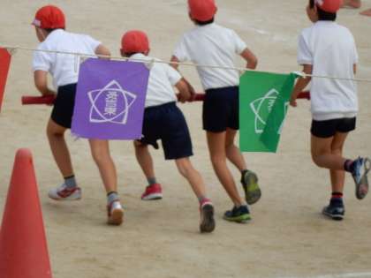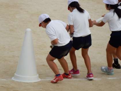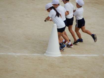 4年生の団体競技です。棒の下を飛び越えていくのがむずかしいです。