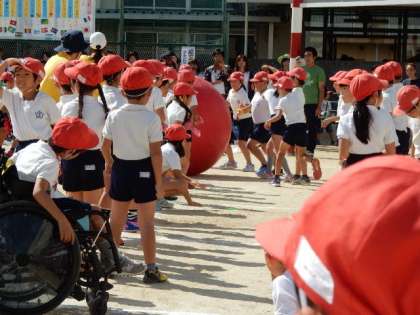 午後の最初の競技は、全校児童による、大玉ころがしです。