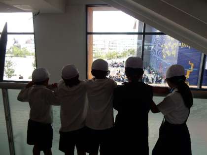 たくさんの学校が来ていて、なかなか前へ進むことのできないところもありました。
